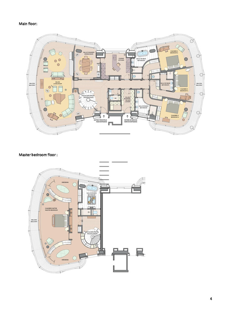 Ce magnifique duplex dans le bâtiment B offre 410 m² de surface habitable, balcons autour de l’appartement, avec une vue magnifique sur le roc et la mer.