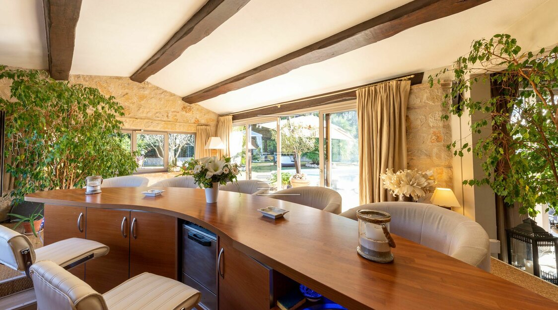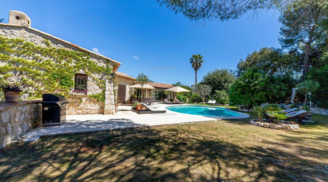 Villa Saint-Paul – L’Art de Vivre Provençal signé Robert Dallas Au cœur de Saint-Paul-de-Vence, cette propriété de 490 m², érigée en 1996 et rénovée en 2017, allie authenticité et élégance contemporaine. Ses façades en pierre, poutres apparentes et sols en pierres de Château reflètent le style unique de Robert Dallas. Sur 4 104 m² de terrain, dont 2 260 m² plats et 1 844 m² boisés, elle offre 6 chambres, 7 salles de bains, 3 salons avec cheminée, une cuisine haut de gamme et un bureau. Piscine chauffée plein sud, terrasses, jardin méditerranéen, appartement indépendant et vue panoramique complètent ce cadre exceptionnel, à deux pas du village mythique.