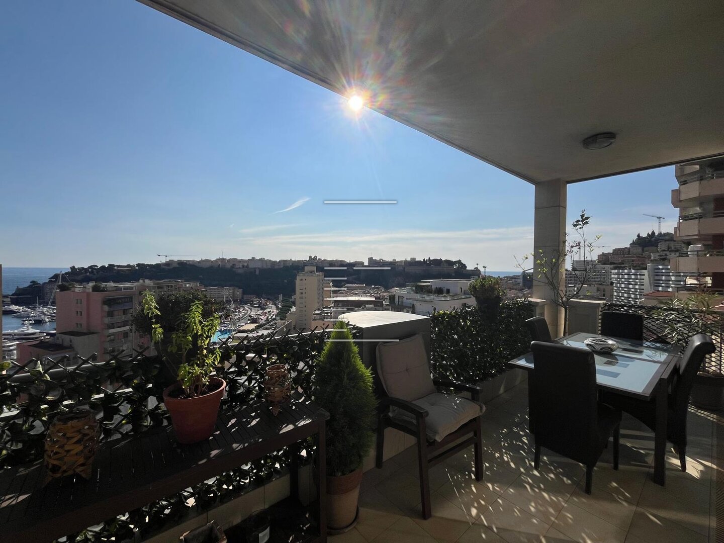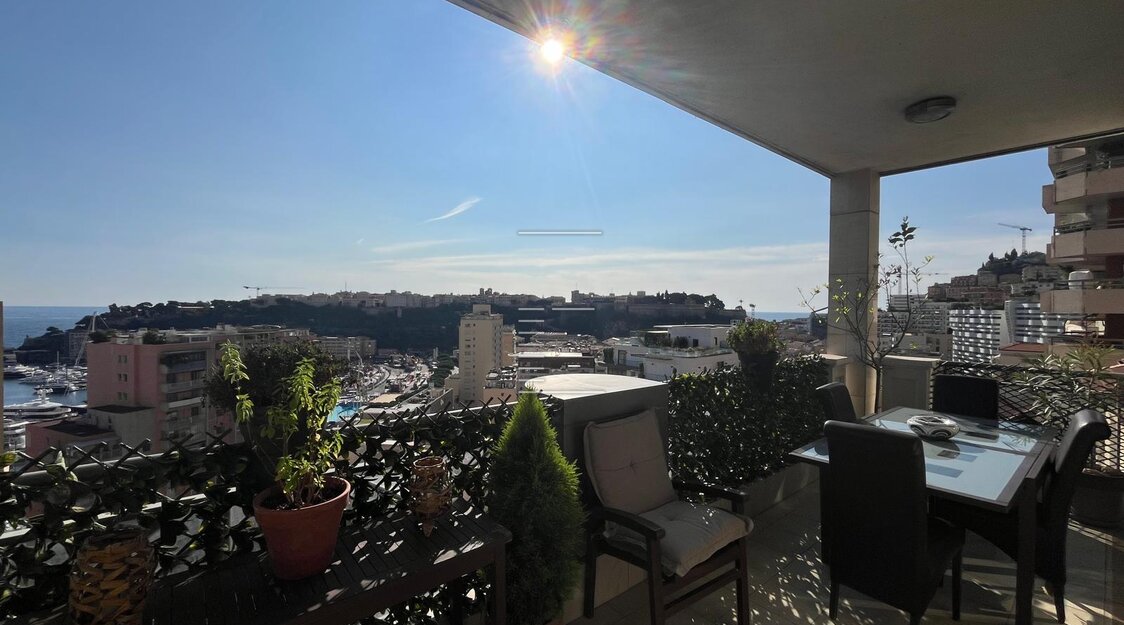 L’appartement domine le port de Monaco et offre une jolie vue sur la mer et le Palais Princier.