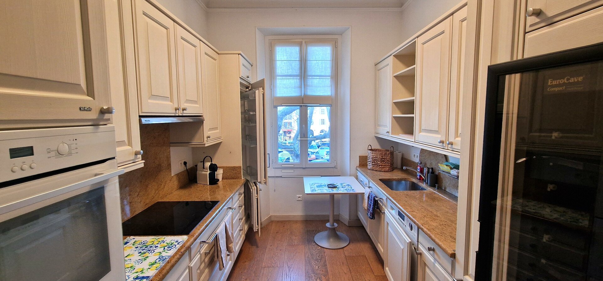 Расположенный на первом этаже без лифта небольшой, элегантной и идеально ухоженной квартиры, этот перекрёсток сразу же очаровывает своей световостью, высокими потолками и благородством материалов.