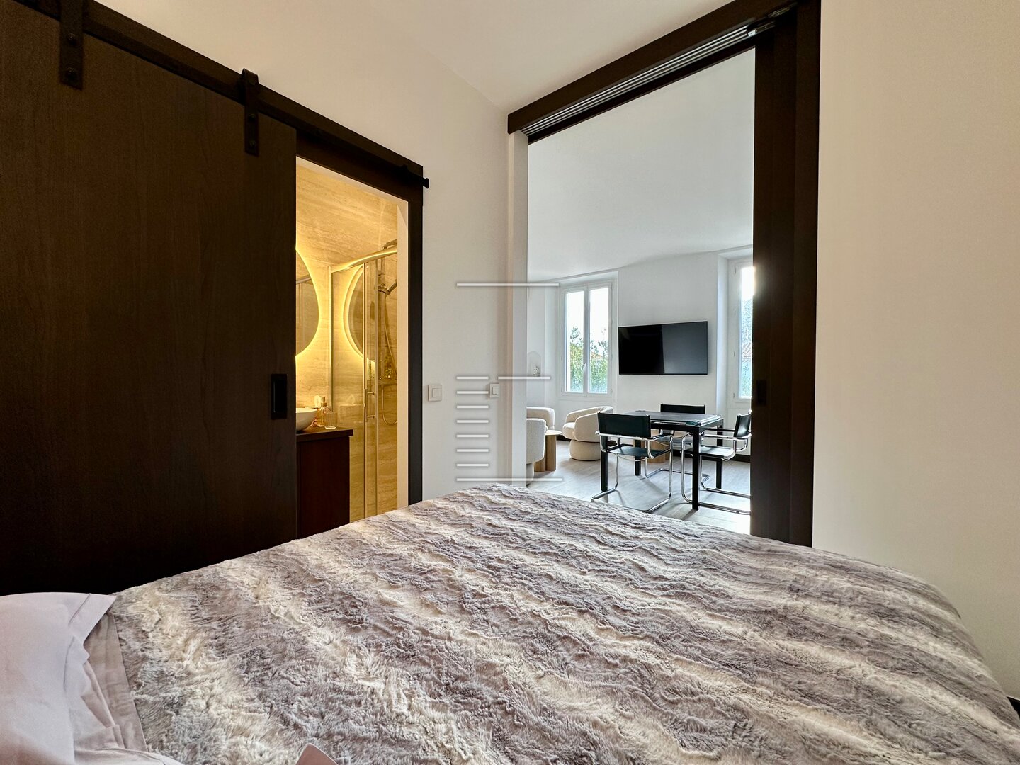Весь интерьер оформлен известным декоратором из Сен-Тропе, создавая элегантную, тёплую и вечную атмосферу.