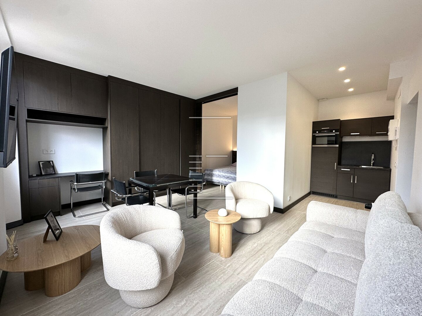 Соседняя студия с независимым входом пользуется тем же уровнем требований: аккуратный декор, благородные материалы, идеальная оптимизация объёмов.